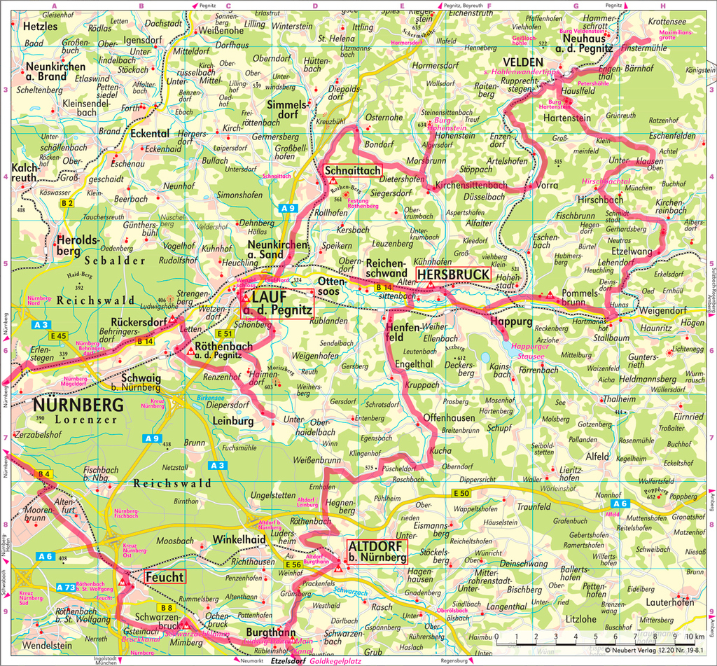 bei der man alle Regionen des NÜRNBERGER LANDES kennen lernen kann. Ausgehend von dieser Tour sind natürlich auch Abstecher zu Sehenswürdigkeiten und Orten, die nicht direkt an der Strecke liegen, möglich. Ausgangs- und Endpunkt dieser Rundtour ist jeweils der Osten von Nürnberg.